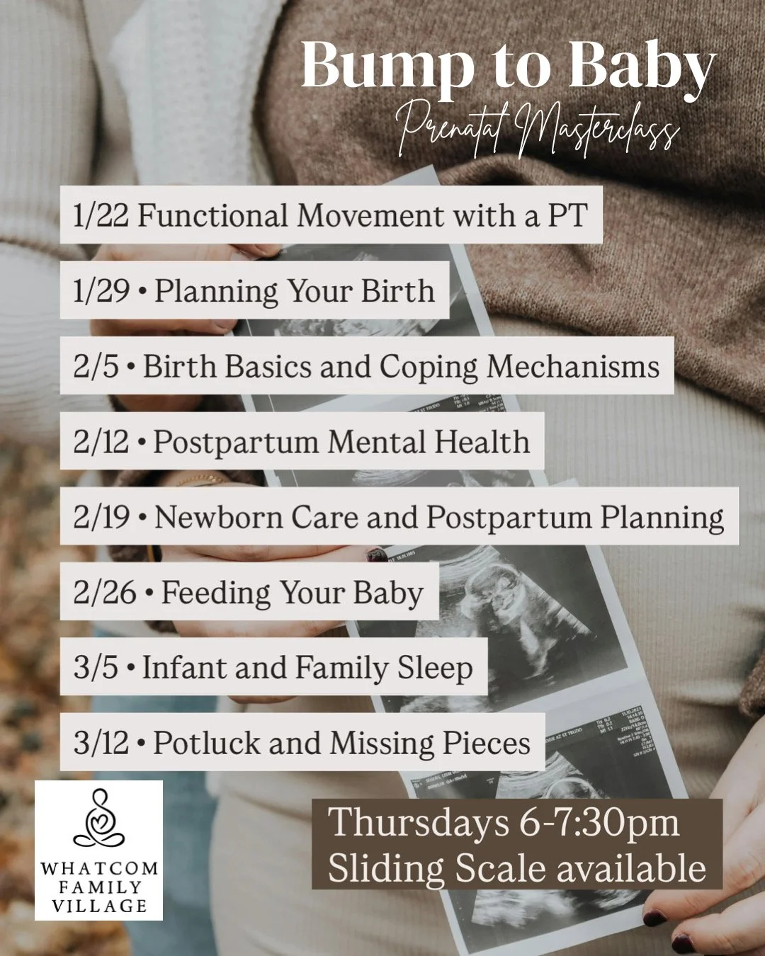 An 8-week comprehensive series on pregnancy, childbirth education, and postpartum for expectant families in Whatcom County